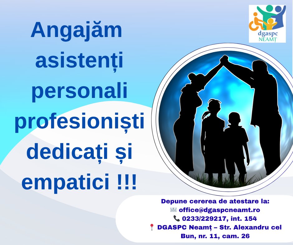 DGASPC Neamț invită toate persoanele care doresc să ofere sprijin și îngrijire persoanelor cu dizabilități să se alăture acestei echipe dedicate!